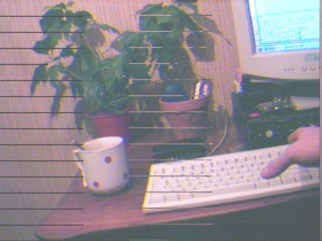 grabbed using VINO V4L driver. (Behind that table I'm hacking ;). (Picture taken before Mikael fixed clipping bug)).